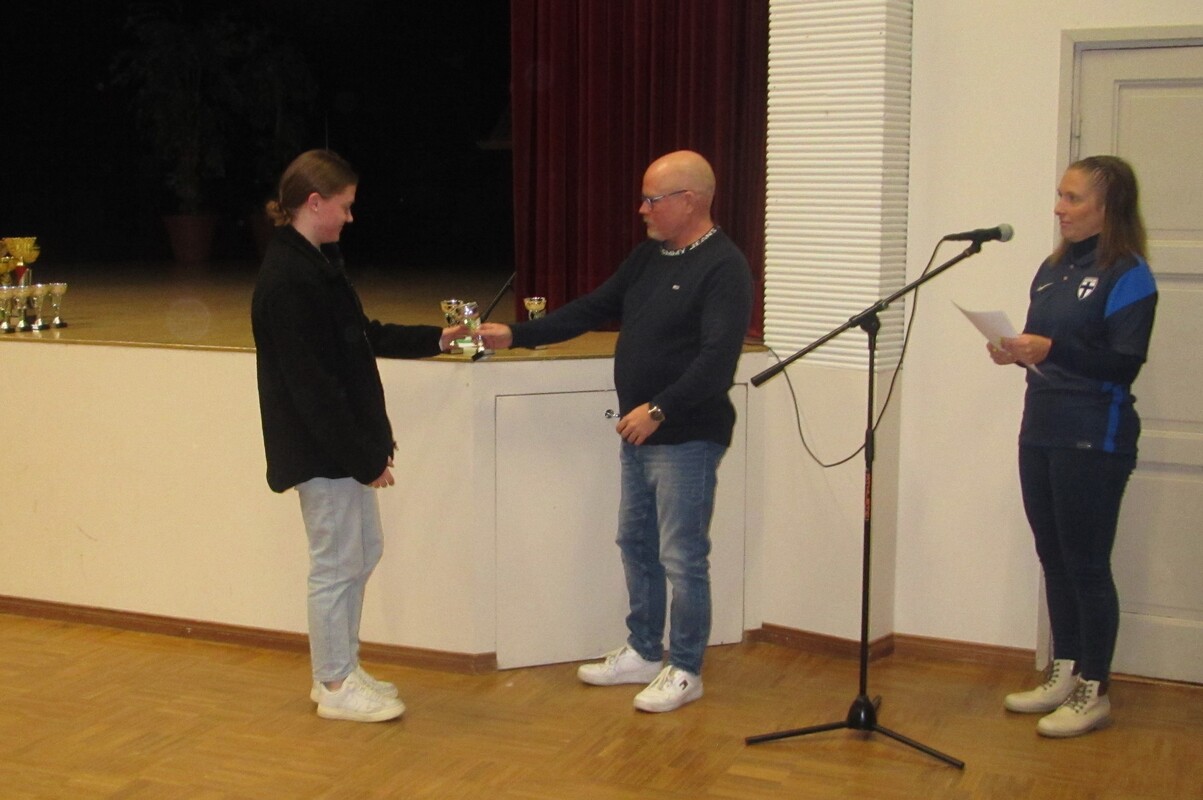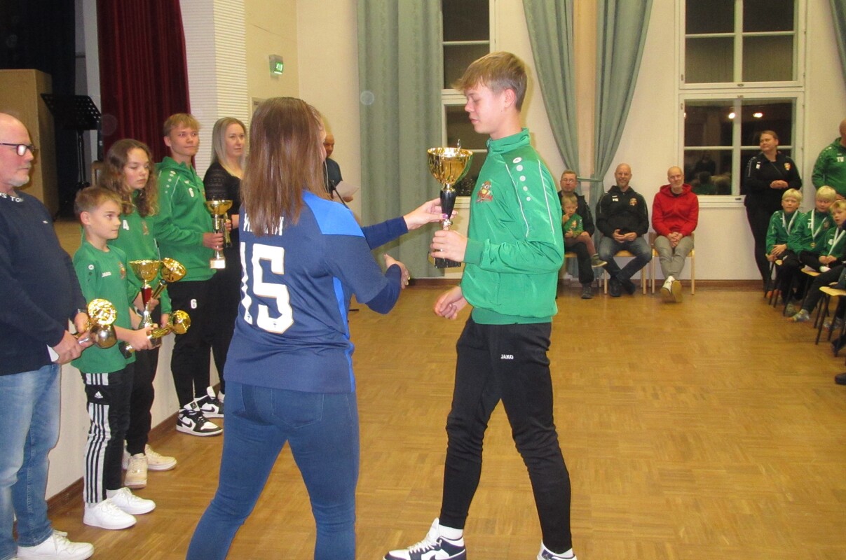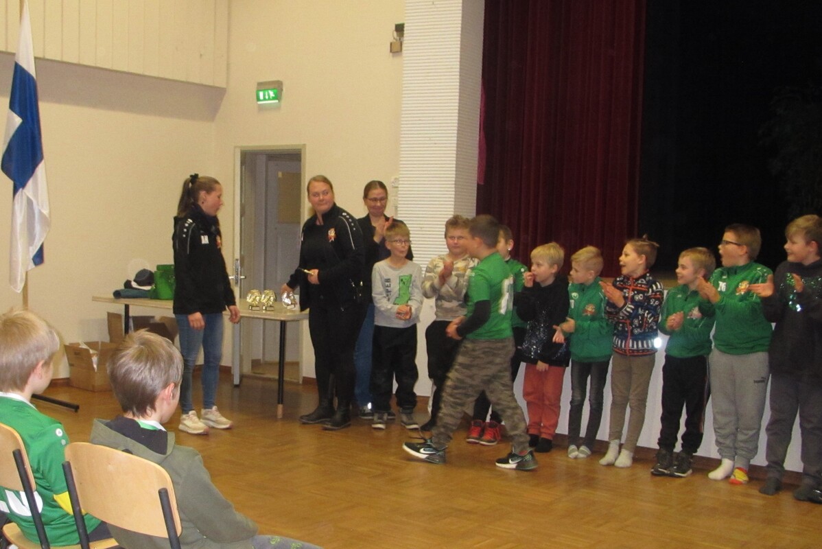 Vuoden pelaaja: Jukka Hyppönen (edustusjoukkue) Vuoden naisjalkapalloilija: Hanna Mäkelä (naisjoukkue) Vuoden junioripelaaja: Sampo Vartiainen (P08-joukkue) Vuoden tyttöpelaaja: Janette Ovaska (tyttöjoukkue) Vuoden maalivahti: Hanna Peltonen (naisjoukkue) Taistelijan malja: Aatu Savolainen (P11-joukkue) Vuoden valmentaja: Jukka Savolainen (naisjoukkue) Vuoden joukkue: P08-joukkue Seuran huomionosoitukset toimihenkilöille: Ansiomerkit: Suomen Palloliiton pronssinen ansiomerkki Hanna Peltonen Palloliiton ansiomerkit voidaan myöntää anomuksesta pistelaskutaulukon pisteiden perusteella. Pronssiseen ansiomerkkiin vaaditaan lisäksi vähintään 10 vuotta aktiivista toimintaa liitto-tai seuratasolla. Seuratoimijamerkit: Suomen Palloliiton hopeinen seuratoimijamerkki: Tero Hatamaa Marko Immonen Jukka Mäki-Latikka Suomen Palloliiton pronssinen seuratoimijamerkki: Jani Järvenranta Antti Kapulainen Mikko Karjalainen Erno Laine Toni Mero Mikko Mustonen Jari Räty Toni Sundholm Linnea Tuominen Palkintojenjaon jälkeen maistui P12-13 joukkueen organisoima mehu-munkki / kahvi-munkki tarjoilu.