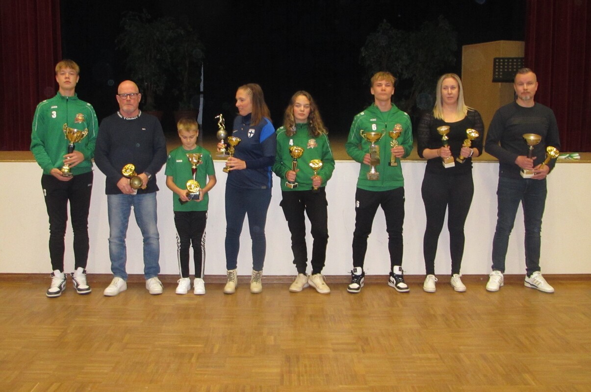 Kauden 2023 päättäjäiset vietettiin Jymylinnassa. Päättäjäisten olennaisena osana on palkita joukkueiden kauden aikana kunnostautuneita ja palkintokriteerit täyttäviä pelaajia. Juniorijoukkueiden ansioituneita pelaajien palkitsemiskriteerit. Kehittynein pelaaja: - kauden aikana kehittynein omaan tasoonsa nähden - tunnollinen harjoittelija ja hyväkäytöksinen Tsemppari: - joukkuepelaaja - yrittää loppuun asti, ei luovuta - kannustaa muita - tunnollinen harjoittelija ja hyväkäytöksinen Kauden pelaaja: - joukkueenparhaita - omaa peliälyä - reilu pelaaja - kannustaa muita - yritteliäs - tunnollinen harjoittelija ja hyväkäytöksinen Joukkueiden palkitsemispuheissa toistui sama toteamus - palkittavien nimeäminen oli todella vaikeaa, koska niin moni pelaaja täyttää nämä kriteerit. Usealla joukkueella oli näiden seuran palkintojen lisäksi oma kiertopalkinto esim pelaajalle, jolla oli eniten harjoituskertoja kauden aikana. Lisäksi nuorimmissa ikäryhmissä P16, P15 ja P14 joukkueissa jokainen pelaaja sai mitalin kaulaan. T10: Kauden kehittynein – Minttu Kuusisto Kauden tsemppari – Charlotta Lindgren Kauden pelaaja – Aliisa Kivikangas Pelaajien valinta – Iris Vikström Pojat: P16 musta: Kauden kehittynein – Tinja Kinnunen Kauden tsemppari – Mauno Saarinen Kauden pelaaja – Eemil Hyyryläinen P16 vihreä: Kauden kehittynein – Sasu Laaksonen Kauden tsemppari – Noel Vilkuna Kauden pelaaja – Jooa Salonen P15 musta: Kauden kehittynein – Daniel Jasiukaitis Kauden tsemppari – Christian Kiviniemi Kauden pelaaja – Toivo Rellman P14 / vihreä: Kauden kehittynein – Topias Kinnunen Kauden tsemppari – Vilho Ojala Kauden pelaaja – Sisu Vehnilä P14 / musta: Kauden kehittynein – Eemeli Vilkuna Kauden tsemppari – Ilmari Haapasalo Kauden pelaaja – Elmo Silkkari P13: Kauden kehittynein – Veikka Koistinen Kauden tsemppari – Nikolas Jokitalo Kauden pelaaja – Eeli Uosukainen Pelaajien valinta, Kauden pelaaja – Nooa Inkinen P12: Kauden kehittynein – Lauri Sippola Kauden tsemppari – Aapo Räty Kauden pelaaja – Arttu Lindgren Pelaajien valinta, Kauden pelaaja – Arttu Hoikkanen P11 / musta: Kauden kehittynein – Luca Sivén Kauden tsemppari – Daniel Hallalehto Kauden pelaaja – Jonne Tapaila P11 / vihreä: Kauden kehittynein – Emil Keskevaari Kauden tsemppari – Aaro Järvenranta Kauden pelaaja – Aleksi Mero P10: Kauden kehittynein – Atte Suomela Kauden tsemppari – Luukas Varpa Kauden pelaaja – Riku Korhonen P08: Kauden kehittynein - Jussi Lehtonen Kauden tsemppari – Rufus Sundholm Kauden pelaaja – Aaku Raja Vuoden treenaaja - Niklas Saarinen (P08 oma palkinto) Naiset: Kauden joukkuepelaaja: Taina Niinivirta Kauden kehittynein: Nanne Kekkonen Kauden taistelija: Veera Kronqvist Kauden pelaaja: Karoliina Moilanen Miehet: Kauden tulokas: Rabar Ali Kauden aktiivisin: Roni Mustonen Kauden joukkuepelaaja: Aleksi Viitanen Kauden taistelija: Ville Nieminen Seuran kiertopalkintojen saajat ovat seuraavat: