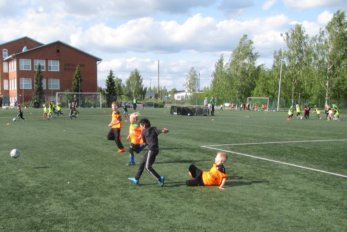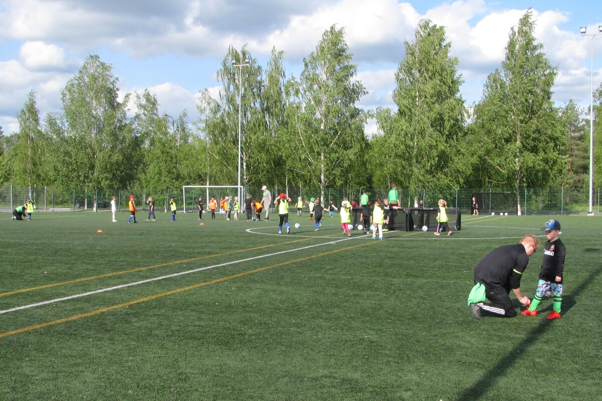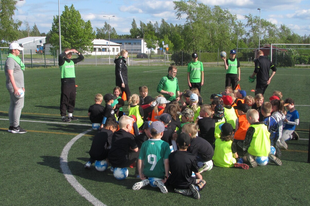 54 innokasta pelaajaa aloitti jalkapallokoulun tänään maanantaina. Koulu jatkuu joka päivä perjantaihin saakka ja heinä-elokuun vaihteessa jatketaan vielä toinen viikko. Heti alkuun jaettiin jokaiselle omaksi jalkapallokoulun osallistumispaita sekä pelipallo.
