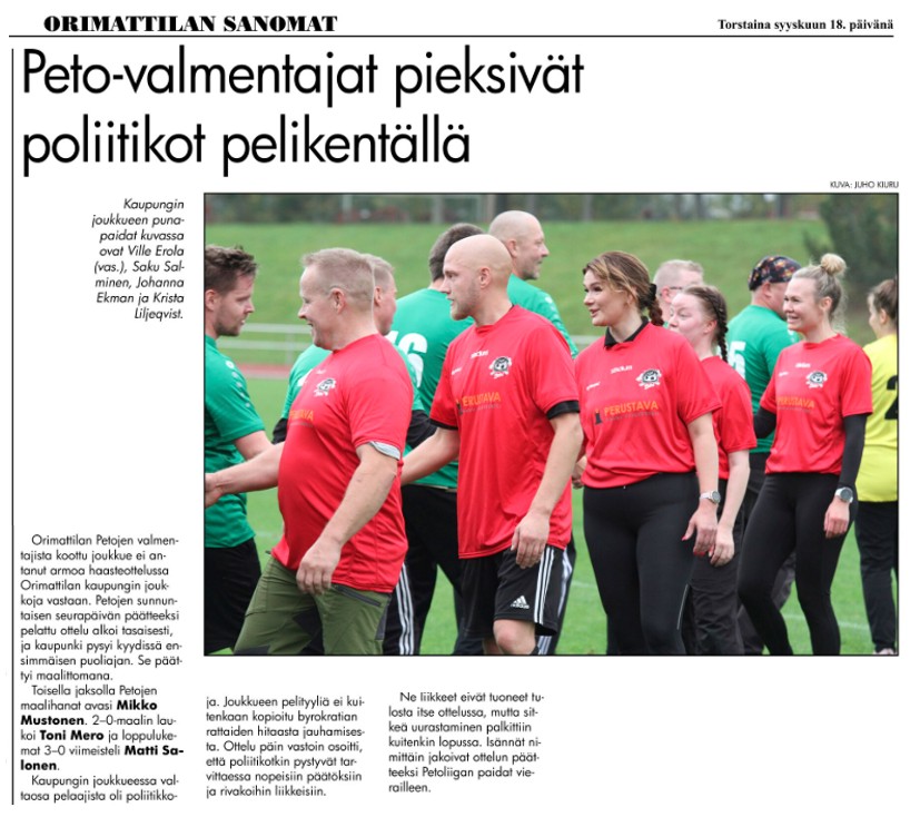 Uutinen Orimattilan Sanomissa 16.9.2025